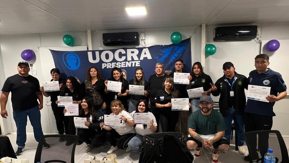 Más de veinte mujeres recibieron sus certificados del Curso de Empoderamiento Administrativo para Mujeres Obreras en Roles de Apuntadoras, una capacitación desarrollada por la Secretaría de Trabajo de Río Negro y la UOCRA, realizado en el campamento del proyecto VMOS cercano a Lamarque, denominado PK-190.